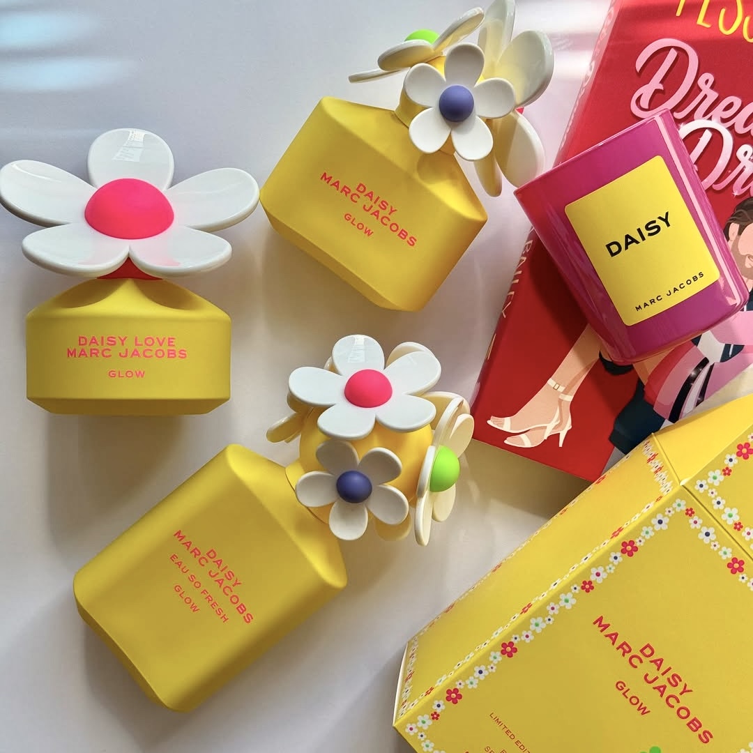 Ra mắt vào năm 2024, Marc Jacobs Daisy Love Glow là phiên bản giới hạn trong dòng nước hoa Daisy nổi tiếng, một biểu tượng của tuổi trẻ, niềm vui và sự tươi sáng. Phiên bản Glow lần này được ví như “ánh nắng trong chai”, mang đến cảm giác rạng rỡ, tích cực và tràn đầy năng lượng. Thiết kế vẫn giữ dáng tròn quen thuộc nhưng được phủ tông vàng rực rỡ, cùng bông cúc lớn trên nắp chai như đang tỏa sáng dưới nắng sớm. Nhìn tổng thể, Daisy Love Glow mang vẻ đẹp hiện đại nhưng vẫn đáng yêu, đúng tinh thần của cô gái Marc Jacobs, tự do, tươi vui và luôn biết cách khiến mình nổi bật một cách tự nhiên.