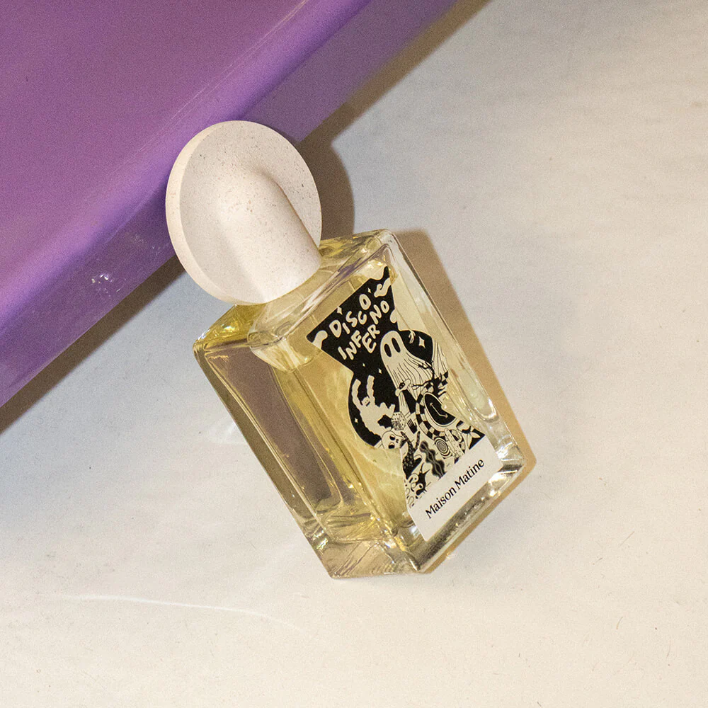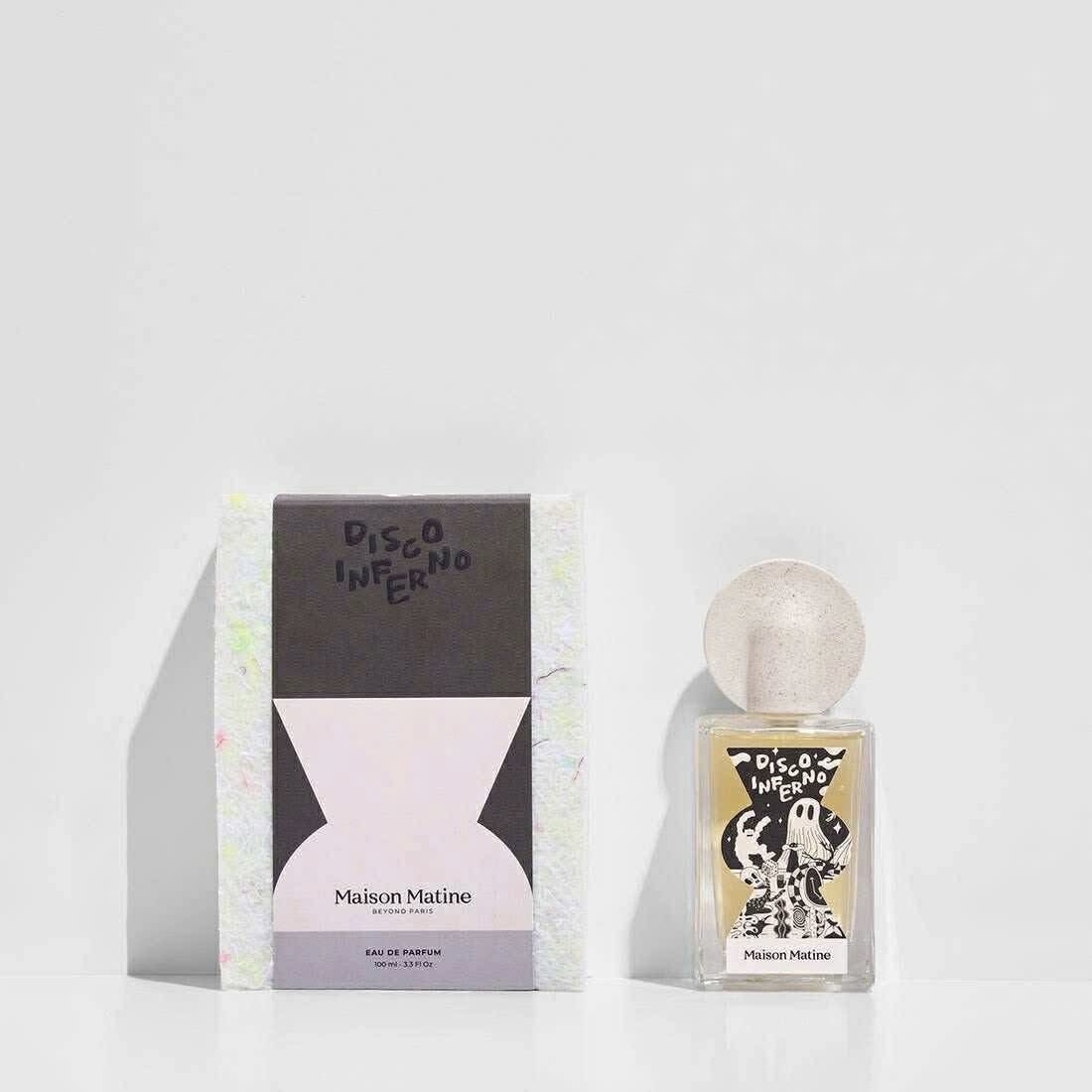Maison Matine Disco Inferno ra mắt vào năm 2025, là một trong những sáng tạo nổi bật thuộc bộ sưu tập Night Fever, dòng nước hoa lấy cảm hứng từ nhịp sống sôi động của đêm Paris, nơi ánh sáng, âm nhạc và cảm xúc hòa quyện thành một “vũ trụ” riêng của sự tự do. Tên gọi “Disco Inferno” mang nghĩa “vũ hội rực cháy”, gợi nên tinh thần táo bạo, cuồng nhiệt và tràn đầy năng lượng, đúng với DNA của thương hiệu niche Maison Matine.