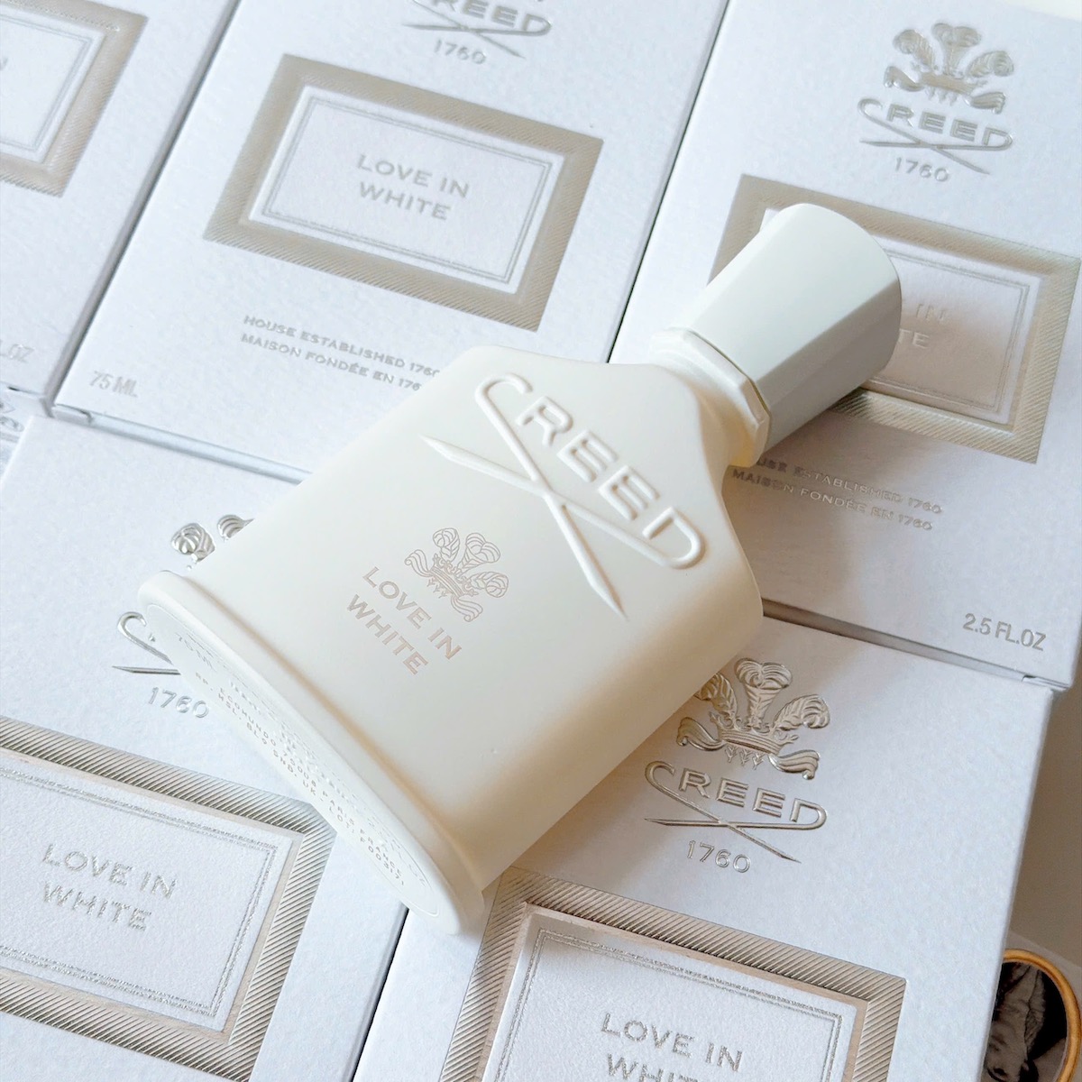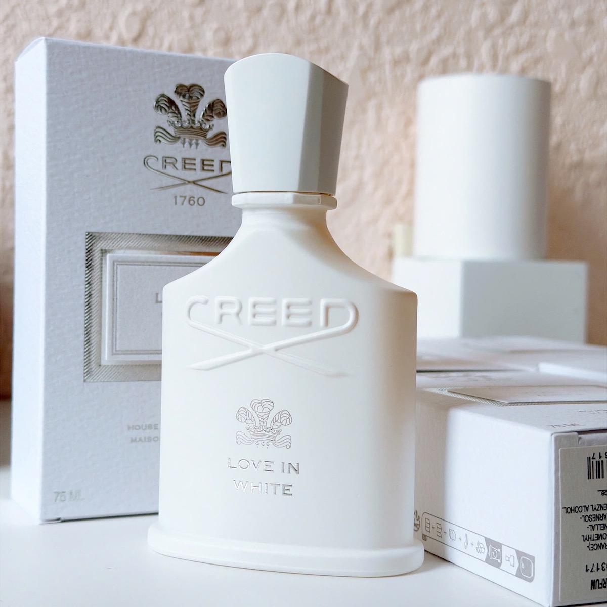 Nước hoa Love in White là một chai nước hoa thuộc dòng hương hoa cỏ – phương Đông dành cho nữ giới. Lấy cảm hứng từ việc thích đi thuyền buồm, chai nước hoa tượng trưng cho cảm giác tuyệt vời của tự do với cảm hứng hài hòa từ biển cả, và ngoài ra đây còn là một sự kết hợp từ các nguyên liệu đến từ năm châu lục. Love in White được ra mắt vào năm 2005 và đã được tinh chế bởi bàn tay tài ba của Erwin Creed đời thứ 7 và Olivier Creed đời thứ 6.