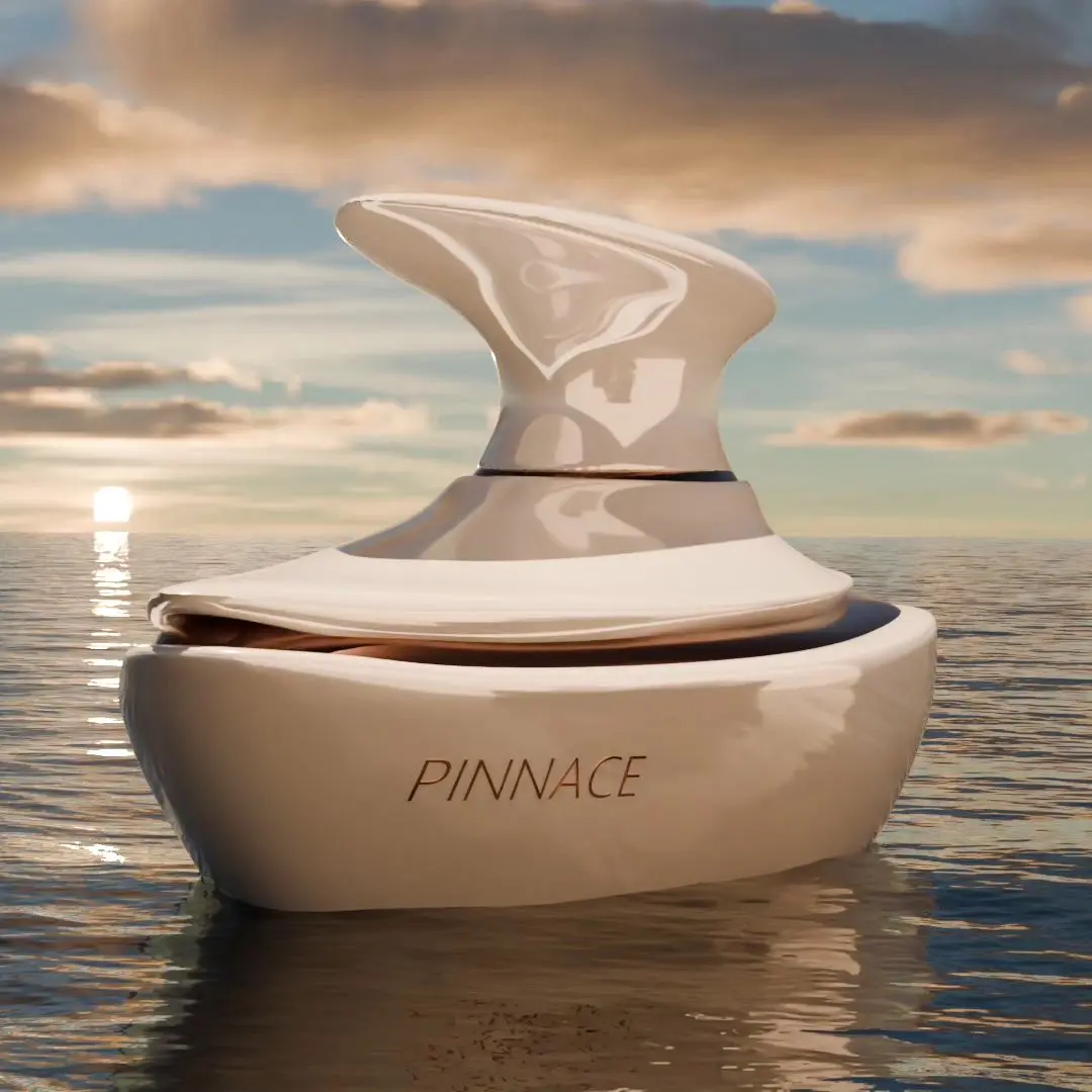 Thiết kế của Pinnace cũng khiến người ta khó rời mắt. Thân chai màu trắng sữa, viền kim loại ánh bạc, dáng chai uốn cong mềm mại tựa cánh buồm giữa biển khơi, đơn giản mà tinh tế. Chỉ cần nhìn thôi, bạn đã cảm nhận được nét thanh khiết và cảm giác “mới mẻ” mà chai nước hoa này muốn truyền tải.