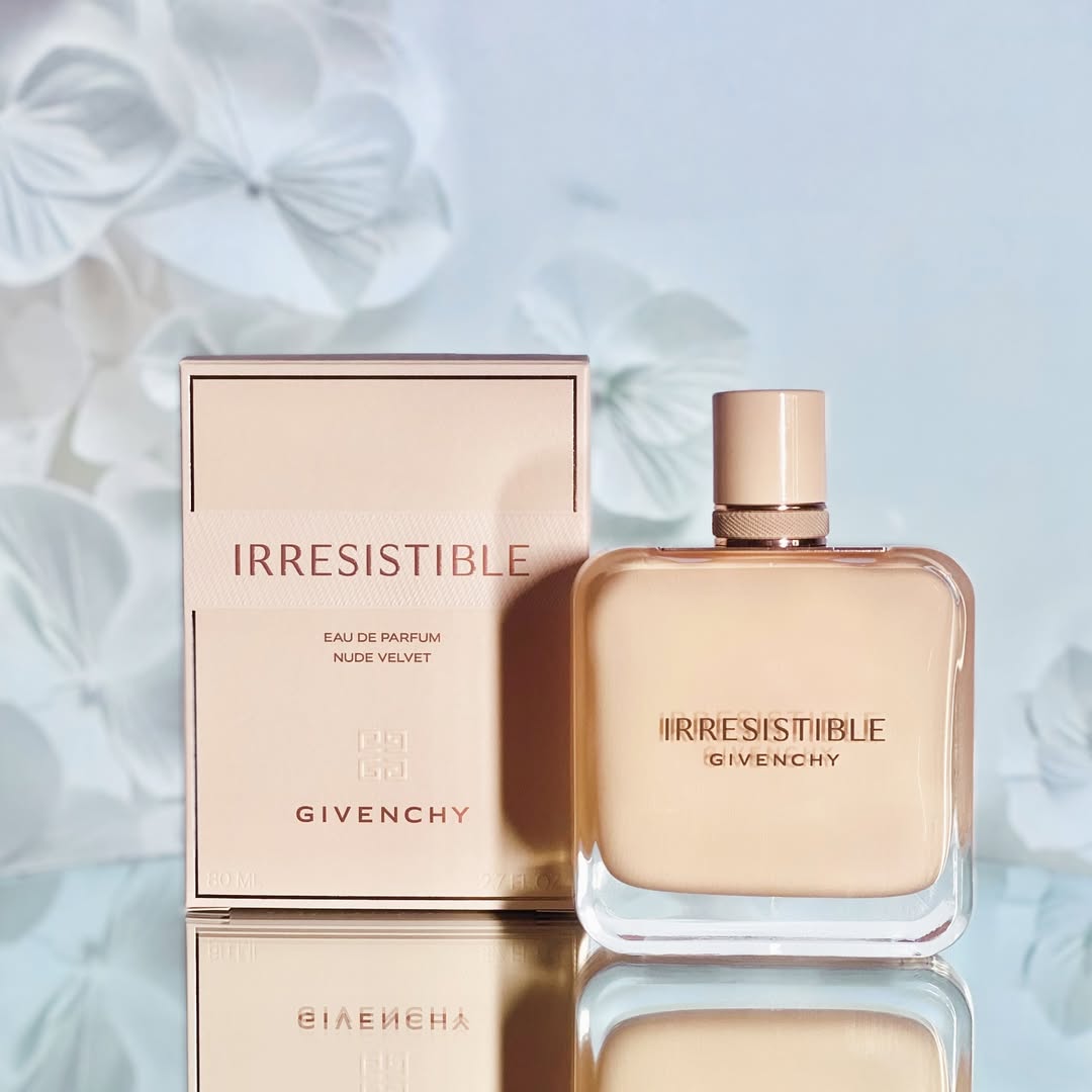Givenchy đã giới thiệu Irresistible Nude Velvet vào năm 2024 như một phiên bản mới trong dòng Irresistible, mang tinh thần mềm mại, tinh tế và gần gũi như làn da được bao phủ bởi lớp nhung mịn. Đây là mùi hương dành cho những cô gái yêu thích sự nữ tính nhưng vẫn muốn giữ lại nét hiện đại, thanh lịch. Chai nước hoa được thiết kế với tông màu hồng nude nhẹ nhàng, gợi liên tưởng đến sự tự nhiên và sang trọng. Hình dáng chai vuông vức, các cạnh bo tròn mềm mại, chi tiết kim loại sáng bóng trên cổ chai làm điểm nhấn, thể hiện sự tinh xảo trong từng đường nét.