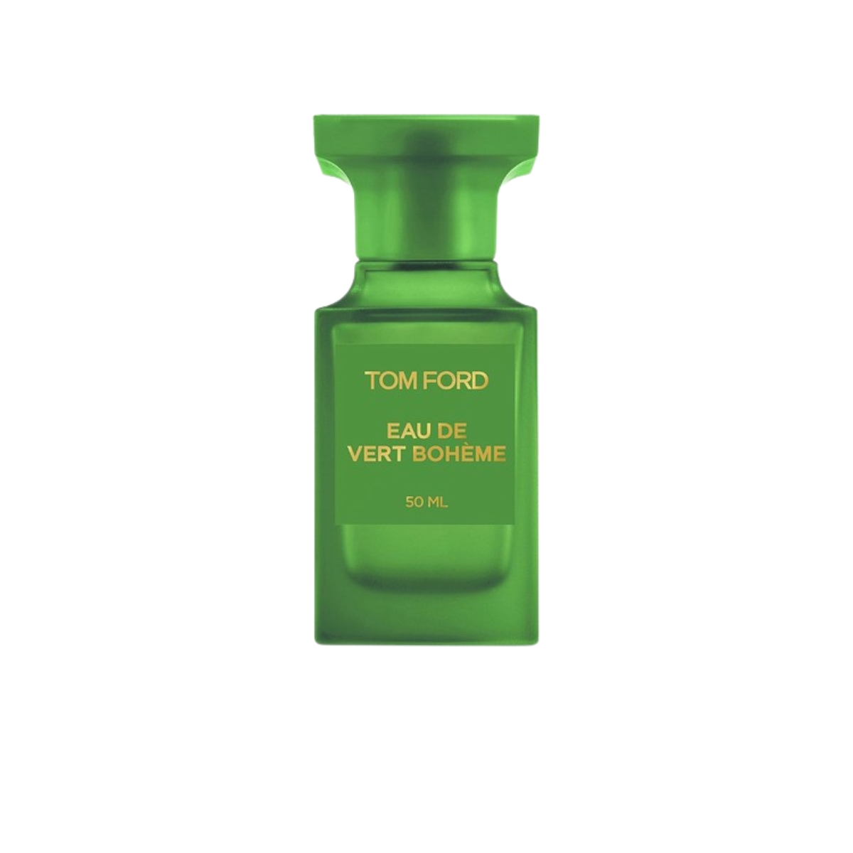 Thiết kế của Tom Ford Eau de Vert Bohème mang đúng tinh thần thanh sạch và phóng khoáng của mùi hương. Chai được làm từ thủy tinh trong suốt phủ sắc xanh lục mềm mắt, nhìn vào là cảm giác mát rượi như một khu vườn vừa đón ánh nắng sớm. Những đường bo vuông vức đặc trưng của dòng Tom Ford vẫn được giữ nguyên, tạo cảm giác sang trọng nhưng không phô trương. Phần nhãn được đặt gọn ở trung tâm, nền xanh, chữ trắng tối giản, nhìn vào là thấy ngay sự tinh tế rất “Tom Ford”.
