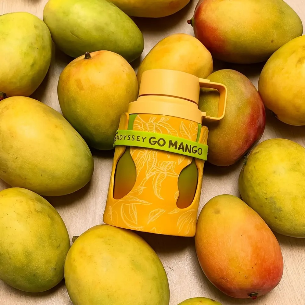 Thiết kế chai của dòng Odyssey luôn mang dáng vẻ mạnh mẽ, chắc tay, pha chút hiện đại. Go Mango cũng vậy, nhưng điểm nổi bật là sự tươi mới trong màu sắc, như gợi trước về câu chuyện nhiệt đới bên trong. Nhìn vào đã thấy sự vui tươi, trẻ trung và phóng khoáng.