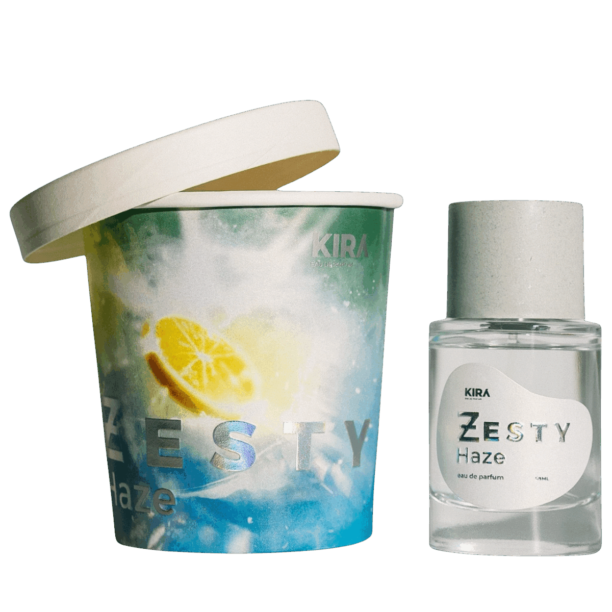 Thiết kế của Kira Zesty Haze vẫn giữ phong cách tối giản quen thuộc: chai thủy tinh trong suốt, nhãn dán đơn giản với tông vàng chanh tươi mát, phản chiếu đúng tinh thần của mùi hương, rực rỡ mà tinh tế. Nắp trắng thanh khiết, đường nét vuông vức và nhỏ gọn tạo cảm giác hiện đại, sạch sẽ, dễ mang theo bên mình. Zesty Haze là mùi hương của sự khởi đầu, của những ngày nắng nhẹ và tâm trạng tươi mới. Một lựa chọn hoàn hảo cho cả nam và nữ, những ai muốn mang theo mình chút nắng, chút gió và sự tự do của tuổi trẻ, dù là ở văn phòng, ngoài phố hay trong những buổi chiều thong thả.