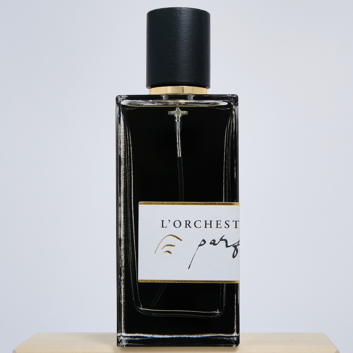 Thiết kế chai vẫn mang phong cách tối giản và nghệ thuật của L’Orchestre Parfum: dáng chai vuông vức, thủy tinh trong hiện đại, nhãn dán mô phỏng bản nhạc, tượng trưng cho mối liên kết giữa hương thơm và âm thanh.