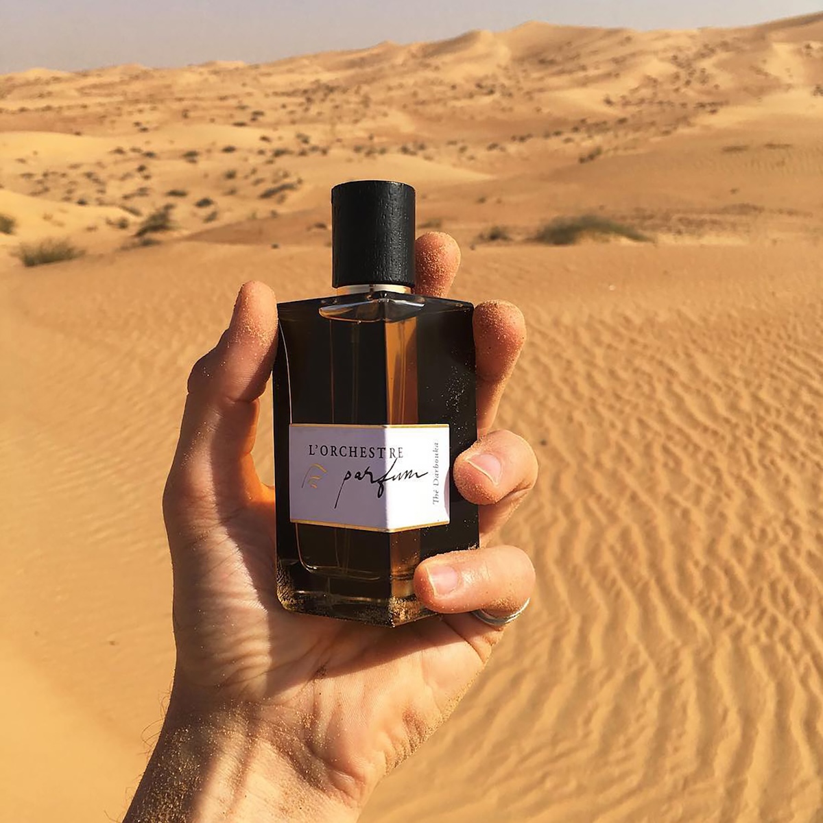 Ra mắt vào năm 2017, Thé Darbouka là một trong những sáng tạo nổi bật của L’Orchestre Parfum, thương hiệu luôn lấy âm nhạc làm linh hồn cho từng mùi hương. Nếu nhiều chai nước hoa gợi lên ký ức hay cảm xúc, thì The Darbouka lại mở ra cả một “bản nhạc sa mạc” đầy nắng, gió và tự do. Chai hương được tạo ra như một chuyến hành trình đưa người dùng đi xuyên qua những buổi chiều vàng của Bắc Phi, nơi mùi trà, gia vị và nhựa thơm hoà vào không khí khô ấm.