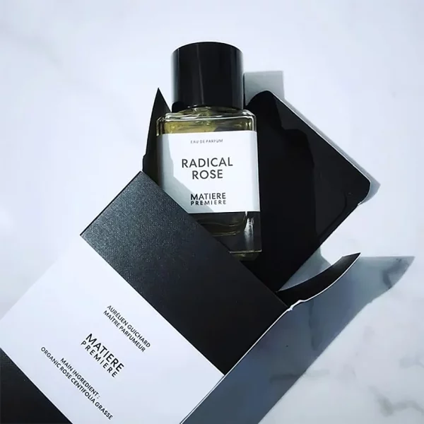 Thiết kế chai giữ đúng tinh thần tối giản của Matière Première: thân thủy tinh trong suốt, nắp đen tròn, nhãn trắng tinh gọn, để toàn bộ sự chú ý dồn về chất lỏng màu vàng nhạt bên trong, như một bông hồng được giữ trọn trong chai thủy tinh. Radical Rose không chỉ là nước hoa, mà còn là tuyên ngôn cho những ai dám khác biệt và sống đúng cảm xúc của mình.